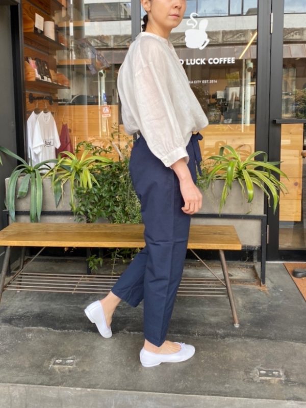 レングスの長さが少し短くなり、くるぶしが覗くスッキリした着丈。